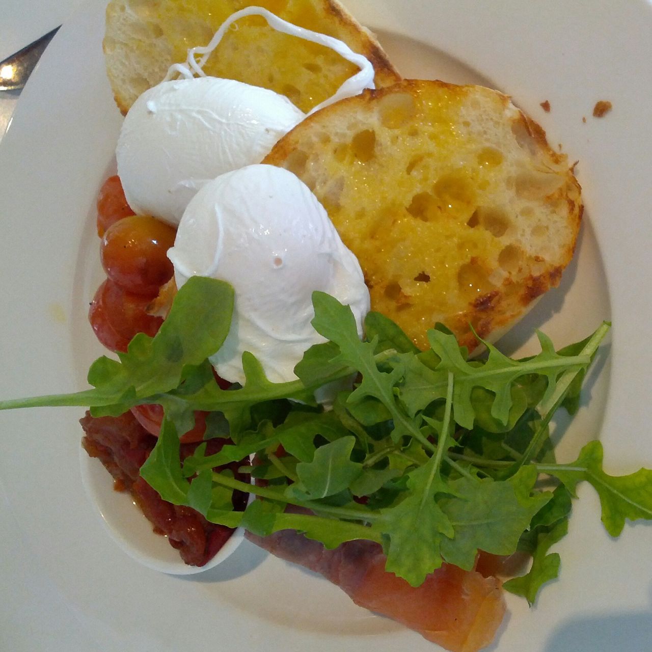 The breakfast menu is short but features some interesting options. Dishes such as mushrooms, polenta, goats curd and pesto, and cornbread with eggs, bacon and maple syrup caught my eye.